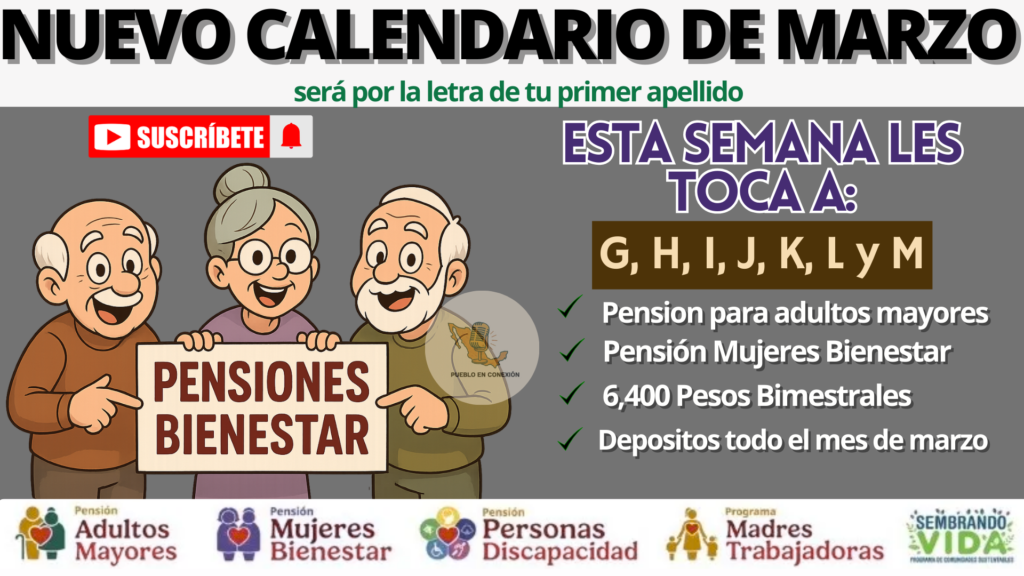 Calendario Pensión Bienestar Marzo 2026: Letras que Cobran del 2 al 6 de Marzo y Montos Oficiales