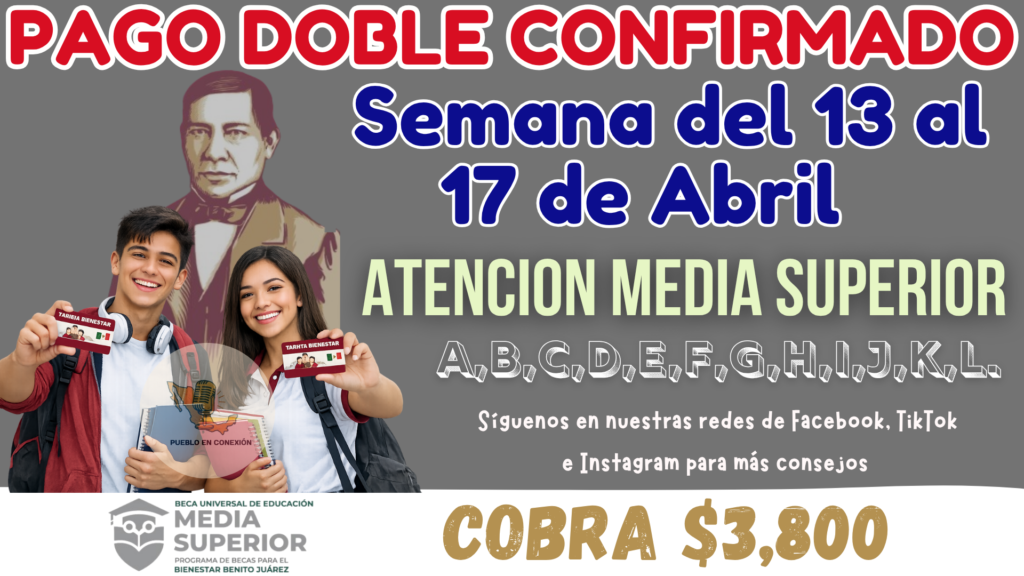 Calendario Oficial Beca Benito Juárez 2026: Doble Pago de $3,800 a Preparatoria (13 al 17 de Abril)
